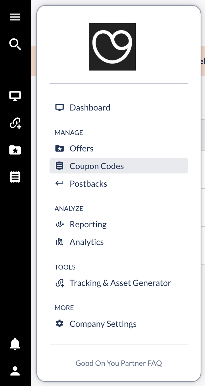 You can access your active coupon codes by entering our platform at this link, and then navigating to the main top-left menu > 'Coupon codes'