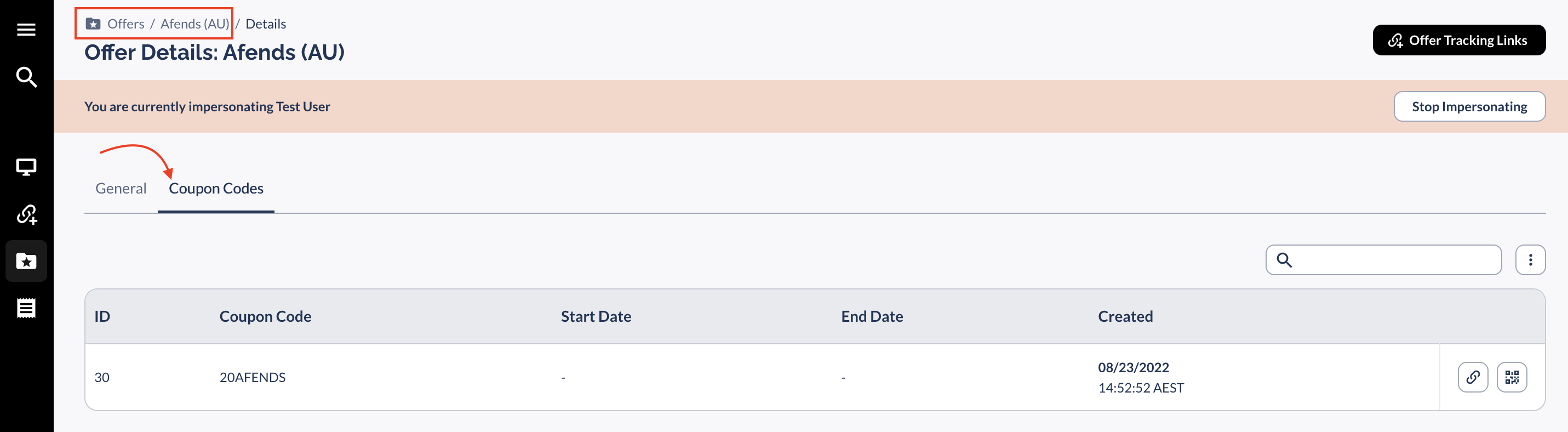 You can also verify whether a specific brand has active coupon codes or not by navigating to the brand's Offer page > Coupon Codes tab